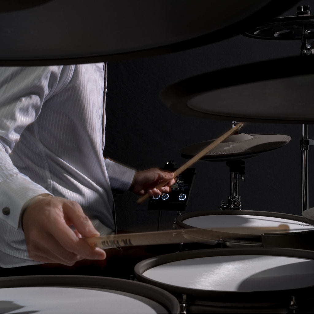 - 12" snare & 18" ride provide realistic feel and greater playing width and depth